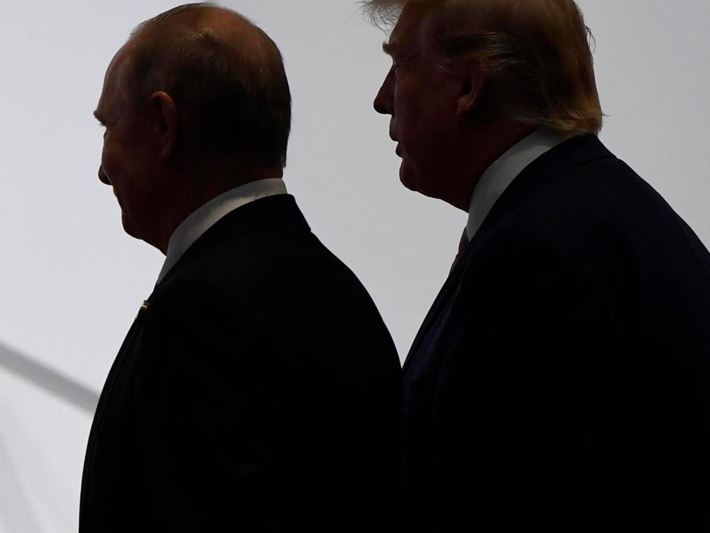 這是2019年6月28日在日本大阪拍攝的參加G20峰會的美國總統(tǒng)特朗普(右)和俄羅斯總統(tǒng)普京。新華社/美聯(lián)