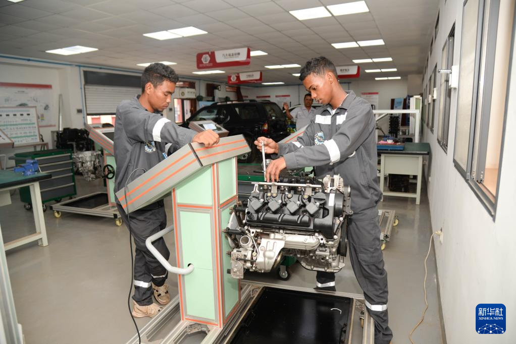 2月10日,在馬達(dá)加斯加首都塔那那利佛的魯班工坊,汽車工程專業(yè)學(xué)生進(jìn)行教學(xué)實踐。新華社發(fā)(西塔卡·拉喬納里松攝)