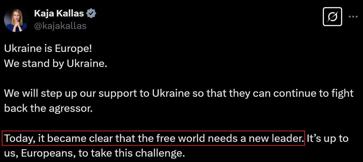 歐盟外交與安全政策高級代表卡拉斯日前表示,“世界需要一個(gè)新的領(lǐng)導(dǎo)者”。言外之意就是,西方不能只靠美國。