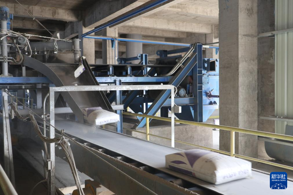 3月5日,在埃塞俄比亞萊米國家水泥廠,一袋袋水泥在傳送帶上經(jīng)過。新華社記者 劉方強 攝