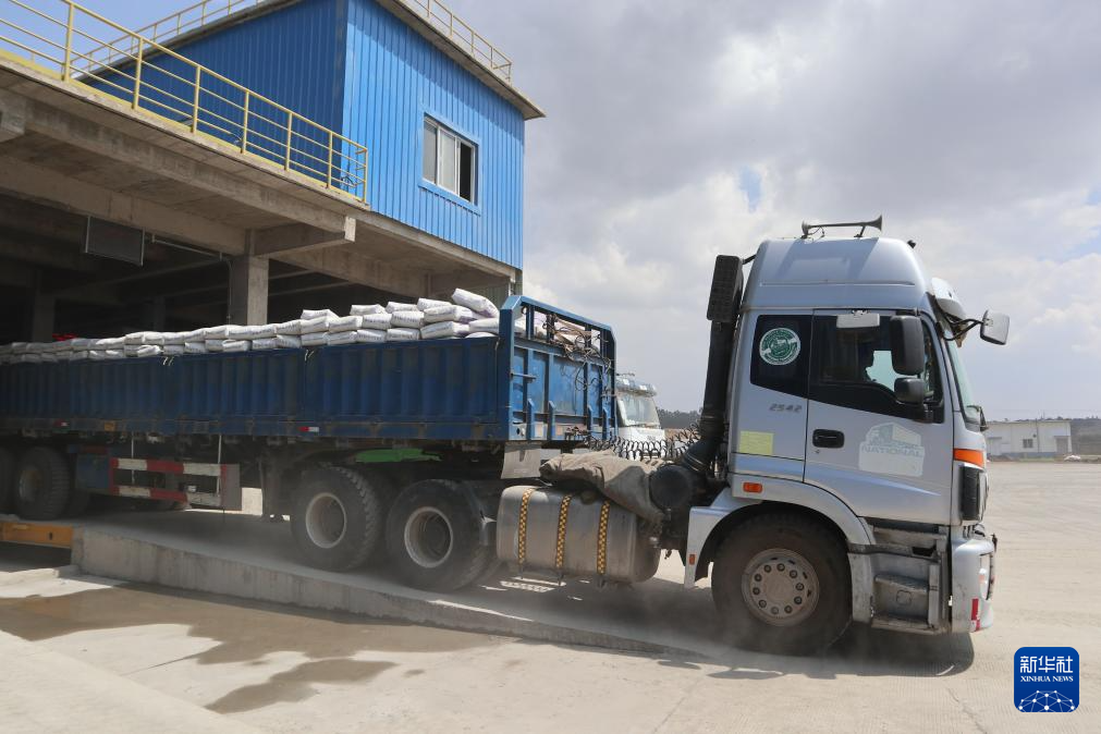 3月5日,在埃塞俄比亞萊米國家水泥廠,一輛裝滿水泥的卡車即將離開廠區(qū)。新華社記者 劉方強 攝