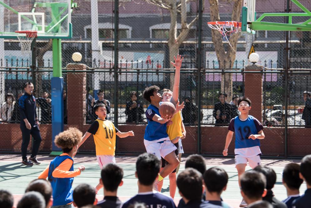 3月19日,中美青少年在石家莊外國(guó)語(yǔ)學(xué)校打籃球友誼賽。劉尊拴 攝