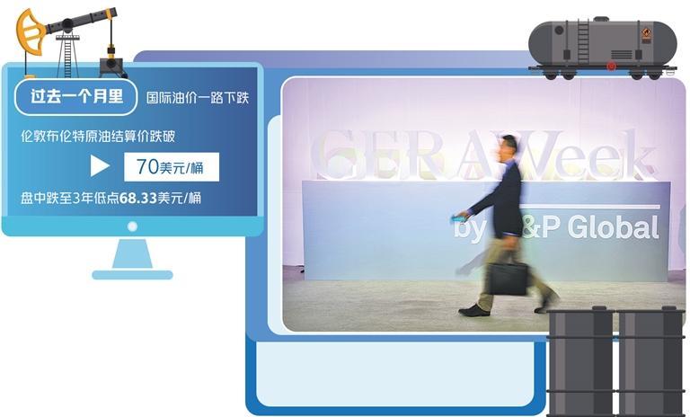 先看最近國(guó)際油價(jià)的走勢(shì)。一方面是油價(jià)隨著美國(guó)的關(guān)稅戰(zhàn)威脅而劇烈波動(dòng),并且跌到半年來的最低點(diǎn)。統(tǒng)計(jì)數(shù)據(jù)表明,在過去一個(gè)月里,國(guó)際油價(jià)一路下跌,倫敦布倫特原油期貨結(jié)算價(jià)跌破70美元/桶,盤中更是跌至3年低點(diǎn)68.33美元/桶。自特朗普就職以來,國(guó)際油價(jià)每桶平均價(jià)格已經(jīng)下跌了10美元之多。