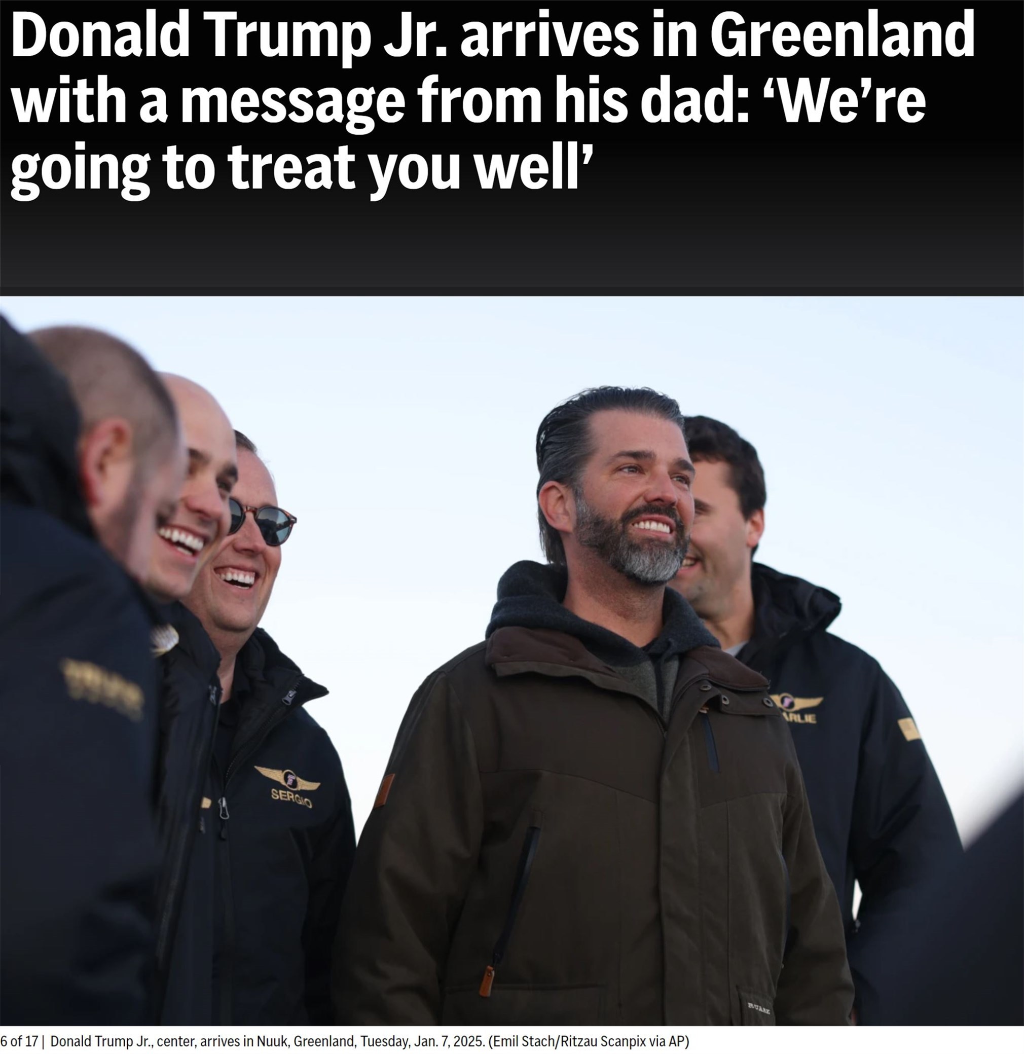 為了讓“奪島”計(jì)劃早日成真,除了美國(guó)代表團(tuán)不請(qǐng)自來(lái)的訪問(wèn)計(jì)劃,特朗普長(zhǎng)子小唐納德·特朗普早在年初就已經(jīng)借私人旅游的名頭去島上“打前站”。