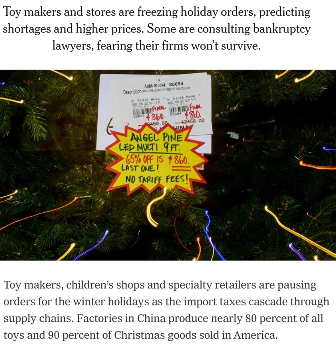 根據(jù)《紐約時報》的數(shù)據(jù),全美近80%的玩具和90%的節(jié)日用品由中國工廠生產(chǎn)。