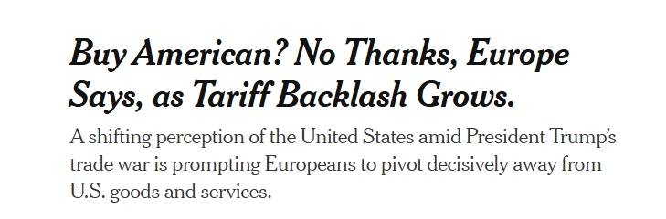 歐洲央行(European Central Bank,ECB)的最新評(píng)估顯示,在美國與歐洲貿(mào)易戰(zhàn)的緊張局勢(shì)下,許多歐洲消費(fèi)者開始回避美國產(chǎn)品和服務(wù),“不再購買美國貨”似乎是一次可能長(zhǎng)期持續(xù)的決定性轉(zhuǎn)變。