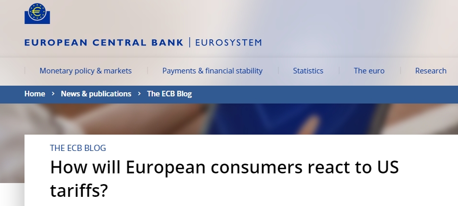 歐洲央行在4月底的博文中還提到,通常情況下,關(guān)稅對(duì)消費(fèi)者的影響程度取決于受影響產(chǎn)品和服務(wù)的需求價(jià)格彈性,即如果價(jià)格上漲,消費(fèi)者可能會(huì)轉(zhuǎn)向更便宜的替代品。然而,近期美國的關(guān)稅可能會(huì)導(dǎo)致更廣泛的偏好轉(zhuǎn)變,使歐洲人完全放棄美國產(chǎn)品和品牌,不論價(jià)格如何變化。