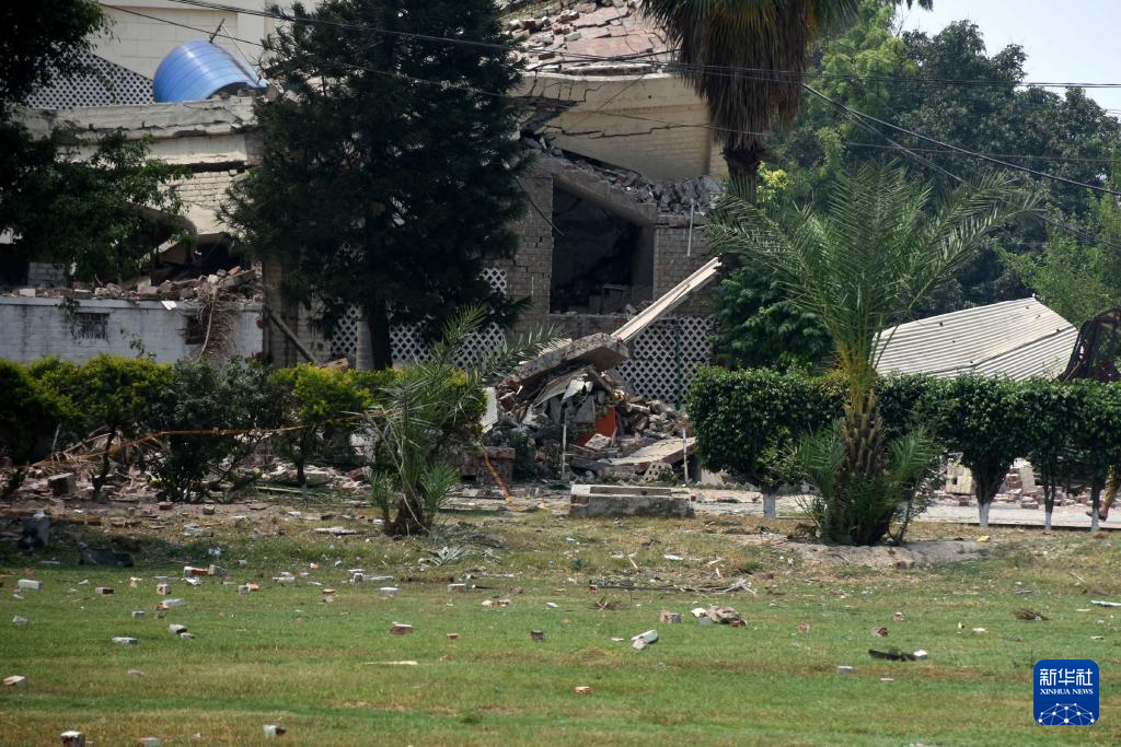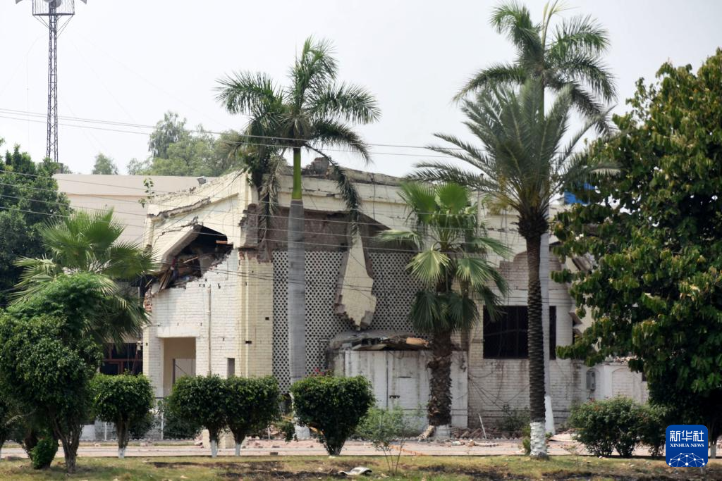 這是5月7日在巴基斯坦東部旁遮普省謝赫布拉地區(qū)穆里德蓋鎮(zhèn)拍攝的遭印度導彈破壞的建筑。新華社發(fā)(薩賈德攝)
