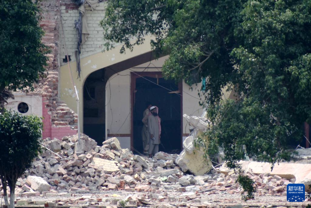 5月7日,人們在巴基斯坦東部旁遮普省謝赫布拉地區(qū)穆里德蓋鎮(zhèn)查看遭印度導彈破壞的建筑。新華社發(fā)(薩賈德攝)