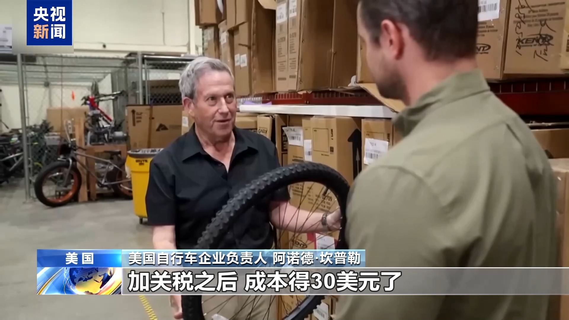 美國自行車企業(yè)負責人 阿諾德·坎普勒:像這樣一個輪子,我們原來的成本大約是10到12美元,加關稅之后,成本得30美元了。