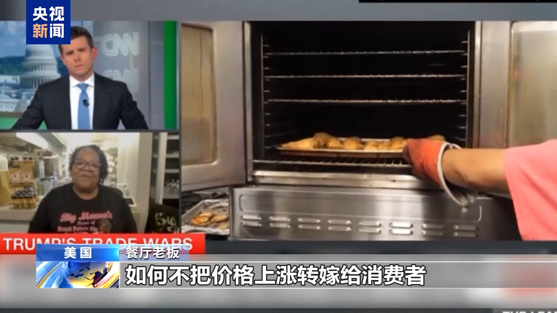 餐廳老板:我們餐廳的炸雞產(chǎn)品上過電視臺(tái)的節(jié)目,我們也在線上賣調(diào)料產(chǎn)品,這是關(guān)稅影響最大的地方。另外就是餐廳的供應(yīng),比如我們使用谷物面包,我們一般用鋁箔烤盤制作面包,但是烤盤的價(jià)格上漲了50%,所以我們現(xiàn)在換回平底鍋制作面包。