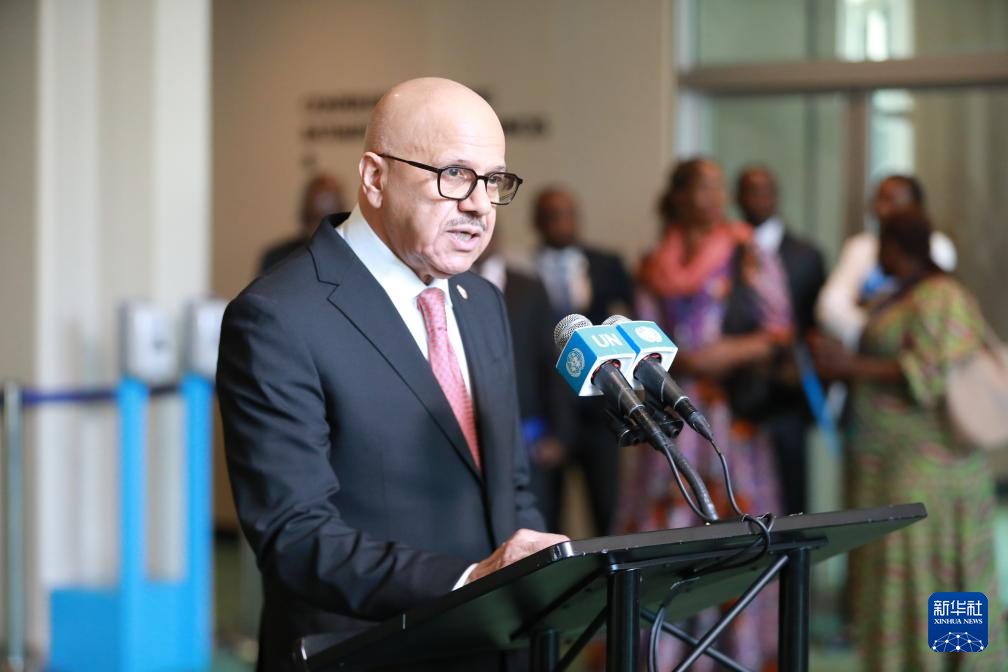 6月3日,在位于紐約的聯(lián)合國總部,巴林外交大臣扎耶尼在巴林當選聯(lián)合國安理會非常任理事國后講話。新華社記者 謝鍔 攝