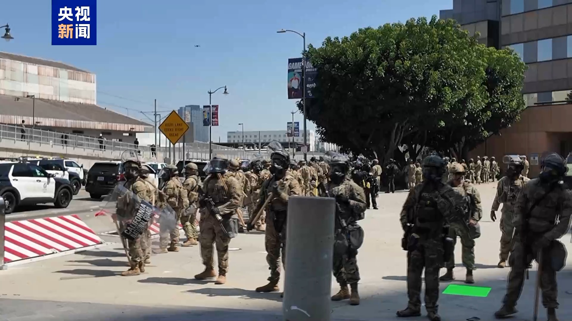 央視記者 劉驍騫:同時,美國國民警衛(wèi)隊(duì)已部署在現(xiàn)場。這些荷槍實(shí)彈穿著迷彩服的士兵就是特朗普政府部署的國民警衛(wèi)隊(duì)隊(duì)員,他們在幾個小時前,也就是當(dāng)?shù)貢r間8日上午入駐到這里。根據(jù)官方消息,目前已經(jīng)有至少300名國民警衛(wèi)隊(duì)隊(duì)員抵達(dá)洛杉磯。