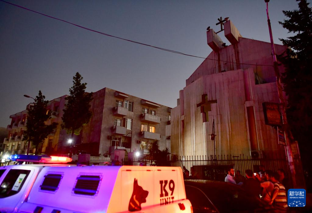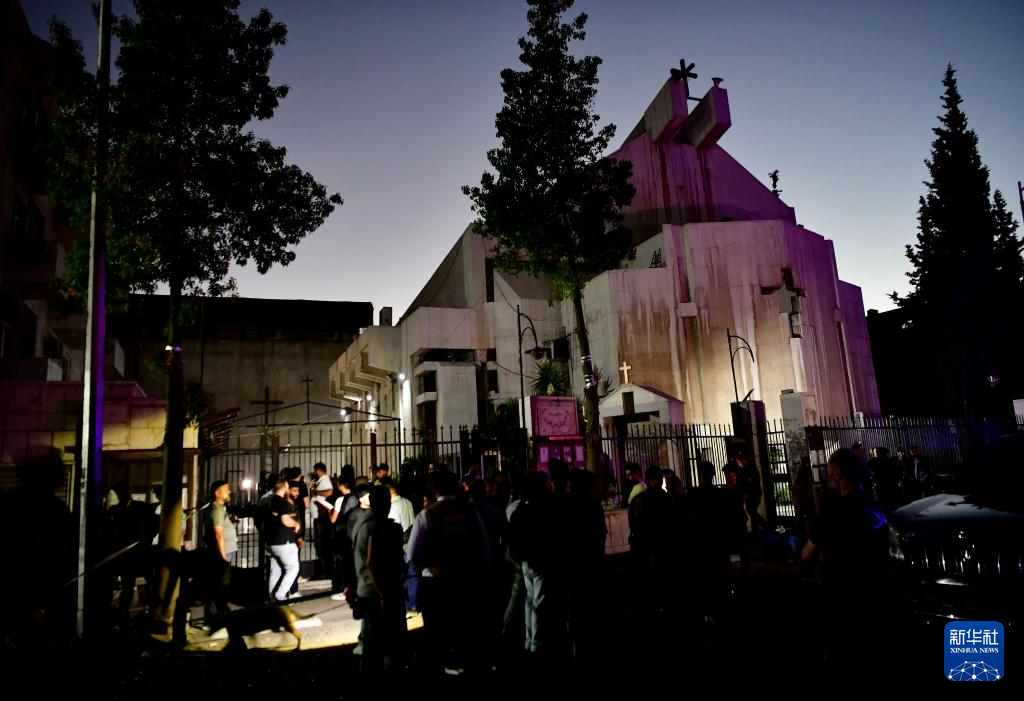 6月22日,人們?cè)跀⒗麃喪锥即篑R士革東部發(fā)生爆炸的教堂外聚集。新華社發(fā)(阿馬爾·薩法爾賈拉尼攝)