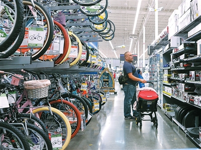 消費者在美國加利福尼亞州洛杉磯縣一家沃爾瑪商店內(nèi)采購商品。