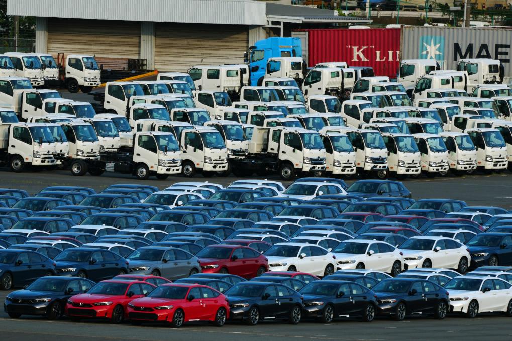 這是7月3日在日本橫濱一處港口拍攝的待售車輛。新華社記者賈浩成攝