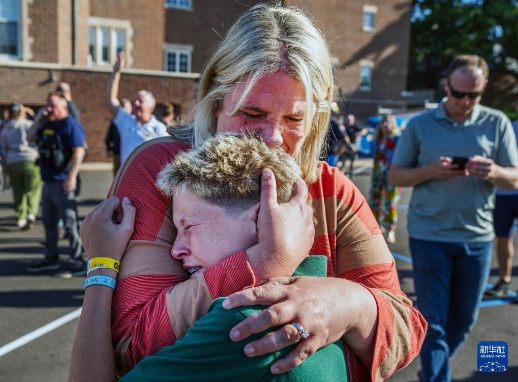 8月27日,在美國明尼蘇達州明尼阿波利斯市南部一所學(xué)校,一名母親安慰自己的孩子。新華社/美聯(lián)