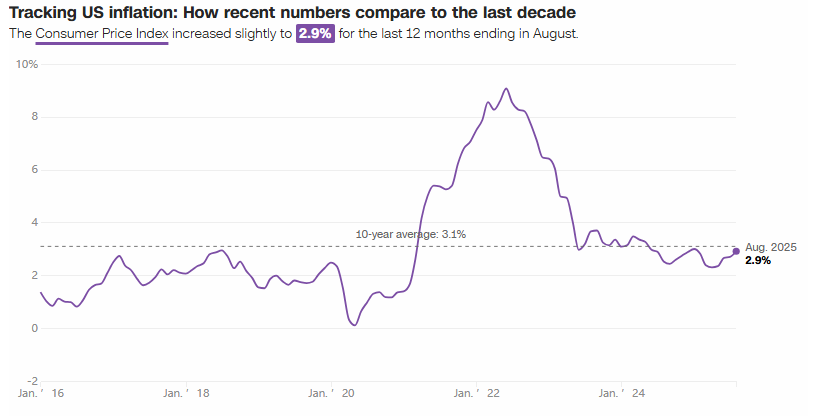 美國(guó)勞工統(tǒng)計(jì)局最新數(shù)據(jù)顯示,2025年8月消費(fèi)者價(jià)格指數(shù)(CPI)環(huán)比上漲0.4%,年通脹率攀升至2.9%,不僅創(chuàng)下今年1月以來(lái)的最高水平,而且增速超過(guò)7月的2.7%。