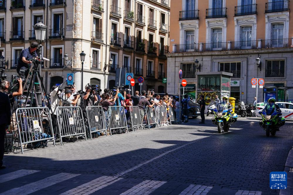 9月14日,在西班牙馬德里,媒體記者在中美經(jīng)貿(mào)會(huì)談地點(diǎn)外等待。新華社記者 彭子洋 攝