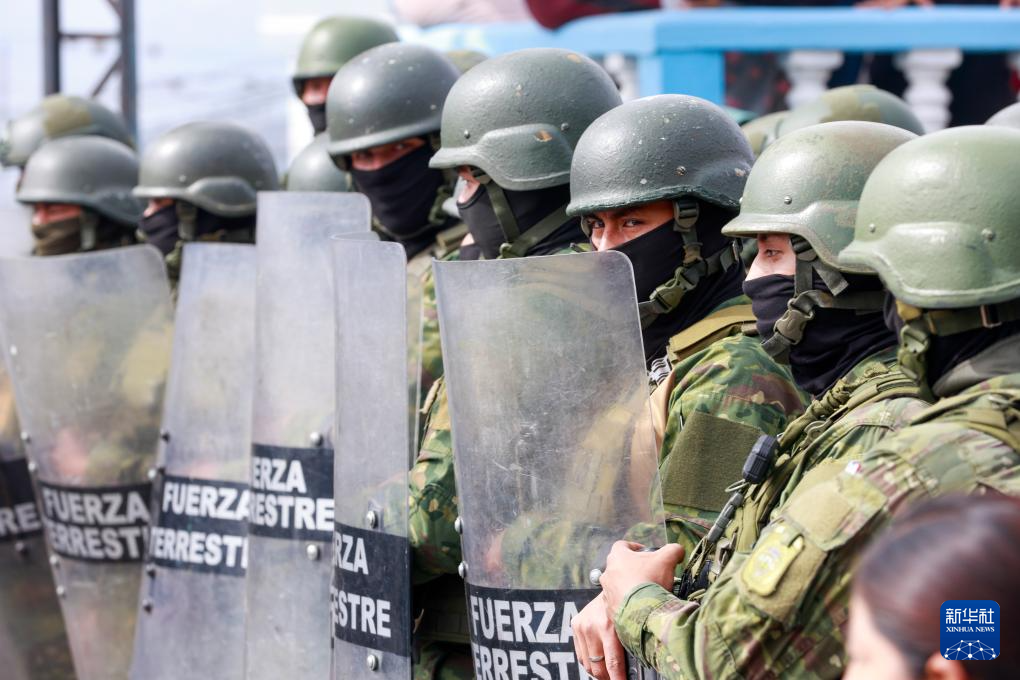 9月16日,在厄瓜多爾首都基多,武裝部隊人員維持秩序。新華社發(fā)(里卡多·蘭德塔攝)