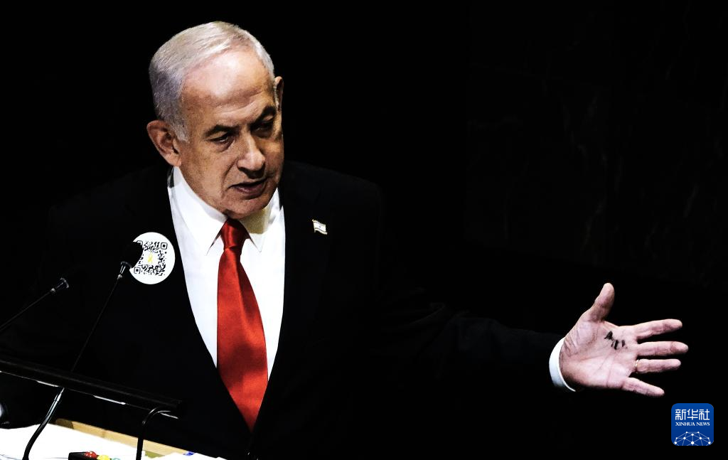 9月26日,在位于紐約的聯(lián)合國(guó)總部,以色列總理內(nèi)塔尼亞胡在第80屆聯(lián)合國(guó)大會(huì)一般性辯論發(fā)言。眾多聯(lián)合國(guó)會(huì)員國(guó)代表起身離席,退場(chǎng)抗議。新華社記者吳曉凌攝