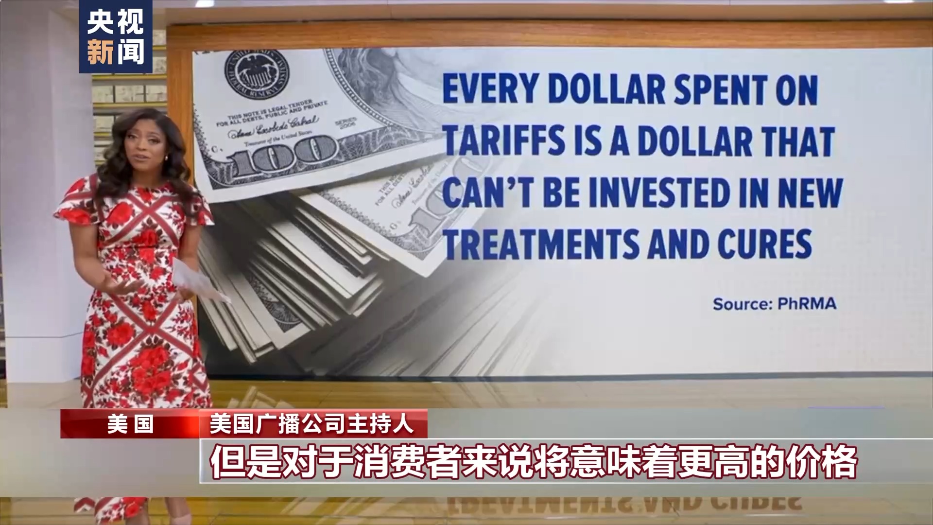 美國(guó)廣播公司主持人:美國(guó)藥物研究機(jī)構(gòu)和制藥廠(chǎng)商協(xié)會(huì)指出,在關(guān)稅上多花的每一美元,都無(wú)法用于投資新治療方法的開(kāi)發(fā)。政府說(shuō)加關(guān)稅是為了國(guó)家安全、為了提振美國(guó)制造業(yè),但是對(duì)于消費(fèi)者來(lái)說(shuō),將意味著更高的價(jià)格。