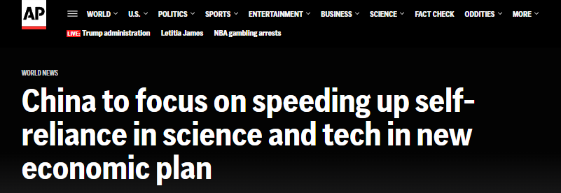 美聯(lián)社報道稱,近年來,中國的產(chǎn)業(yè)政策成功促進了電動汽車與風(fēng)電、光伏產(chǎn)業(yè)的迅猛發(fā)展,目前正將重心延伸至機器人及人工智能領(lǐng)域。報道援引分析人士的話說,此次公報強調(diào)科技自立自強水平要實現(xiàn)大幅提高,這反映出中國在應(yīng)對外部壓力時已具備了更強的韌性。