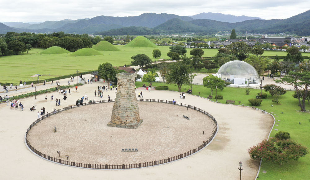9月21日拍攝的韓國(guó)慶州的大陵苑景區(qū)一帶(無(wú)人機(jī)照片)。