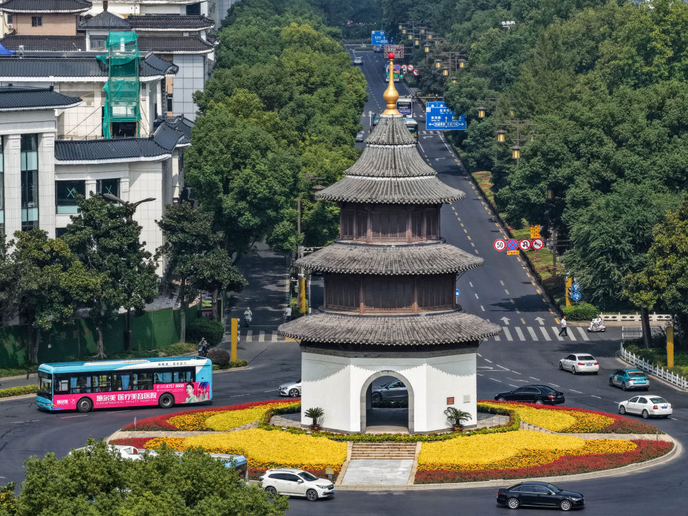 這是10月11日拍攝的江蘇省揚(yáng)州市文昌閣(無(wú)人機(jī)照片)。