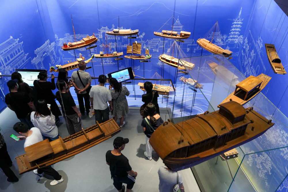 10月11日,游客在位于江蘇省揚(yáng)州市的中國(guó)大運(yùn)河博物館內(nèi)參觀。