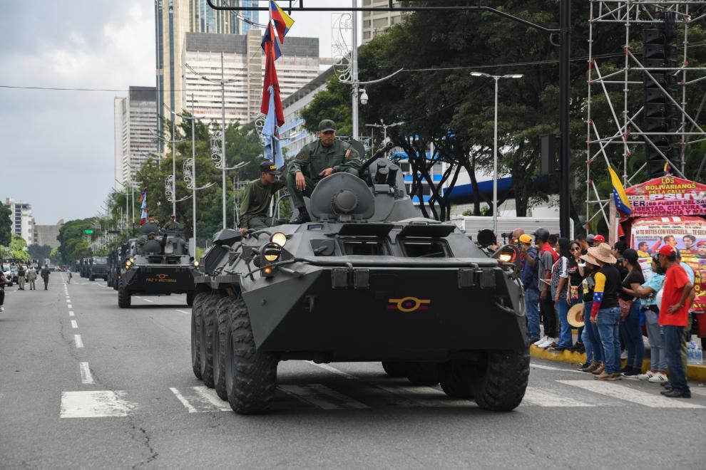 9月23日,在委內(nèi)瑞拉首都加拉加斯,參加游行的裝甲車輛列隊行進。當天,加拉加斯舉行大規(guī)模游行,呼吁保衛(wèi)委內(nèi)瑞拉主權與和平,反對美國在加勒比海域的軍事威脅。新華社發(fā)(馬科斯·薩爾加多攝)