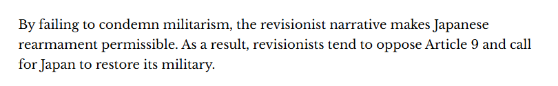 伴隨政治右傾,歷史修正主義敘事在日本社會(huì)不斷蔓延。該文指出,原本反省軍國主義罪行的戰(zhàn)爭(zhēng)敘述正受到挑戰(zhàn),部分勢(shì)力試圖將侵略戰(zhàn)爭(zhēng)披上“解放亞洲”的道德外衣,將日本描繪成西方帝國主義下的被迫“追隨者”。文章認(rèn)為,這些舉動(dòng)的核心目的,則是為日本重整軍備掃清歷史和心理障礙。