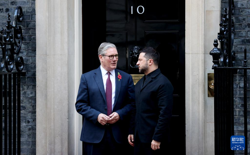 10月24日,在英國(guó)倫敦唐寧街10號(hào)首相府前,英國(guó)首相斯塔默(左)與到訪的烏克蘭總統(tǒng)澤連斯基交談。新華社記者 李穎 攝