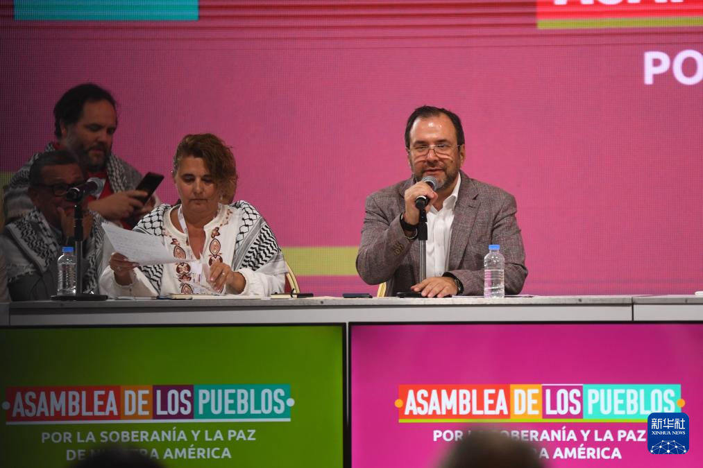 12月9日,委內(nèi)瑞拉外交部長希爾(右)在首都加拉加斯舉行的“美洲主權(quán)與和平人民大會”開幕式上發(fā)表講話。新華社發(fā)(馬科斯·薩爾加多攝)