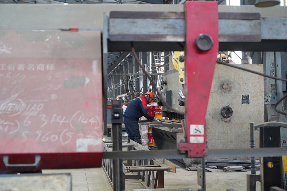 12月8日,在俄羅斯猶太自治州首府比羅比詹市,一家從事鋼結(jié)構(gòu)材料生產(chǎn)的中資企業(yè)的員工正在工作。新華社記者 劉愷 攝