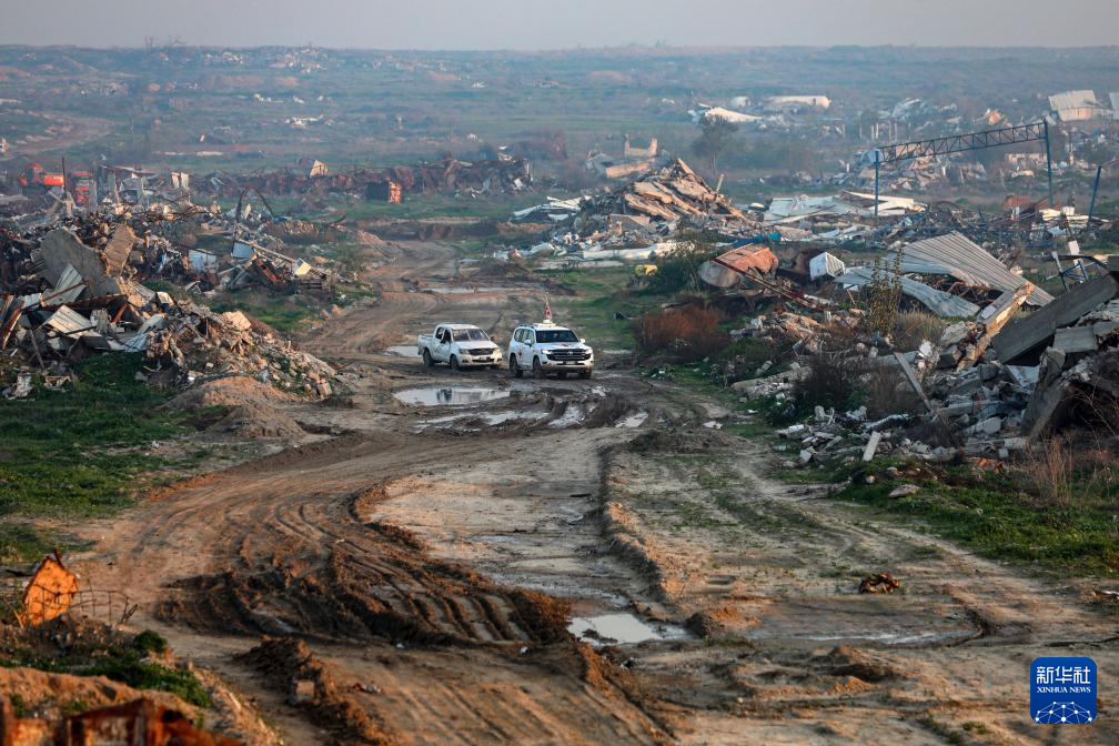 1月7日,在加沙城東南部的宰通社區(qū),紅十字國(guó)際委員會(huì)工作人員參與對(duì)加沙地帶最后一具以色列被扣押人員遺體的搜尋工作。新華社發(fā)(里澤克·阿卜杜勒賈瓦德攝)