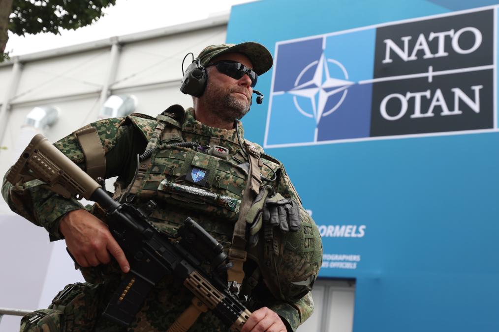 2025年6月24日,在荷蘭海牙,安保人員在北約峰會現(xiàn)場警戒。新華社記者趙丁喆攝