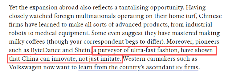 文章最后說,未來全球消費者或將邂逅更多中國品牌。