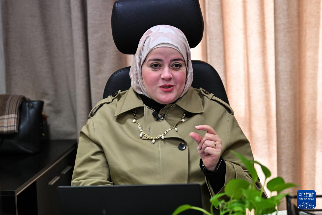 1月19日,在埃及蘇赫奈泉,埃及泰達特區(qū)開發(fā)公司首席執(zhí)行官娜赫拉·伊馬德接受采訪。新華社記者 辛夢晨 攝