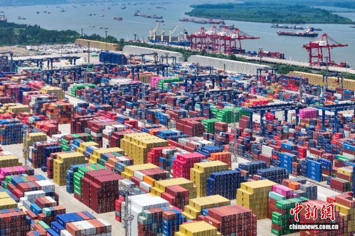 2025年7月14日,航拍長江沿線南京龍?zhí)陡圻M(jìn)出口集裝箱碼頭。(資料圖) 中新社記者 泱波 攝