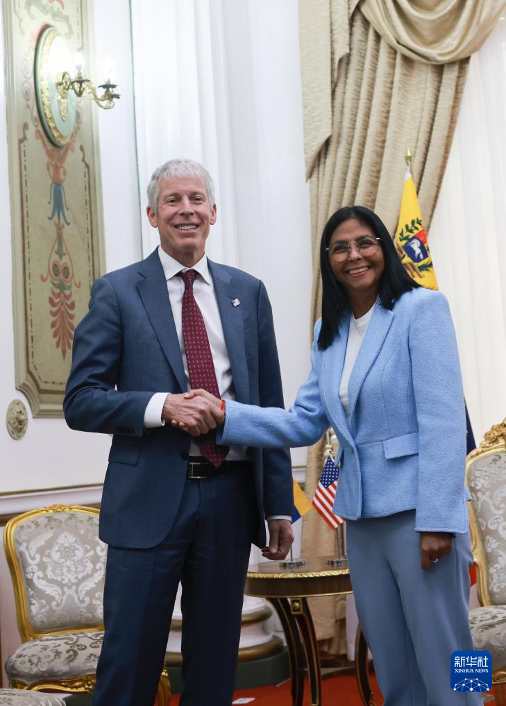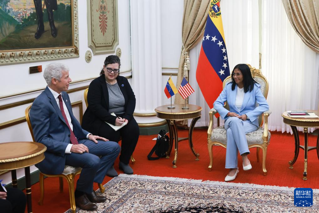 委內(nèi)瑞拉代總統(tǒng)德爾西·羅德里格斯11日在加拉加斯總統(tǒng)府會(huì)見美國能源部長克里斯·賴特。