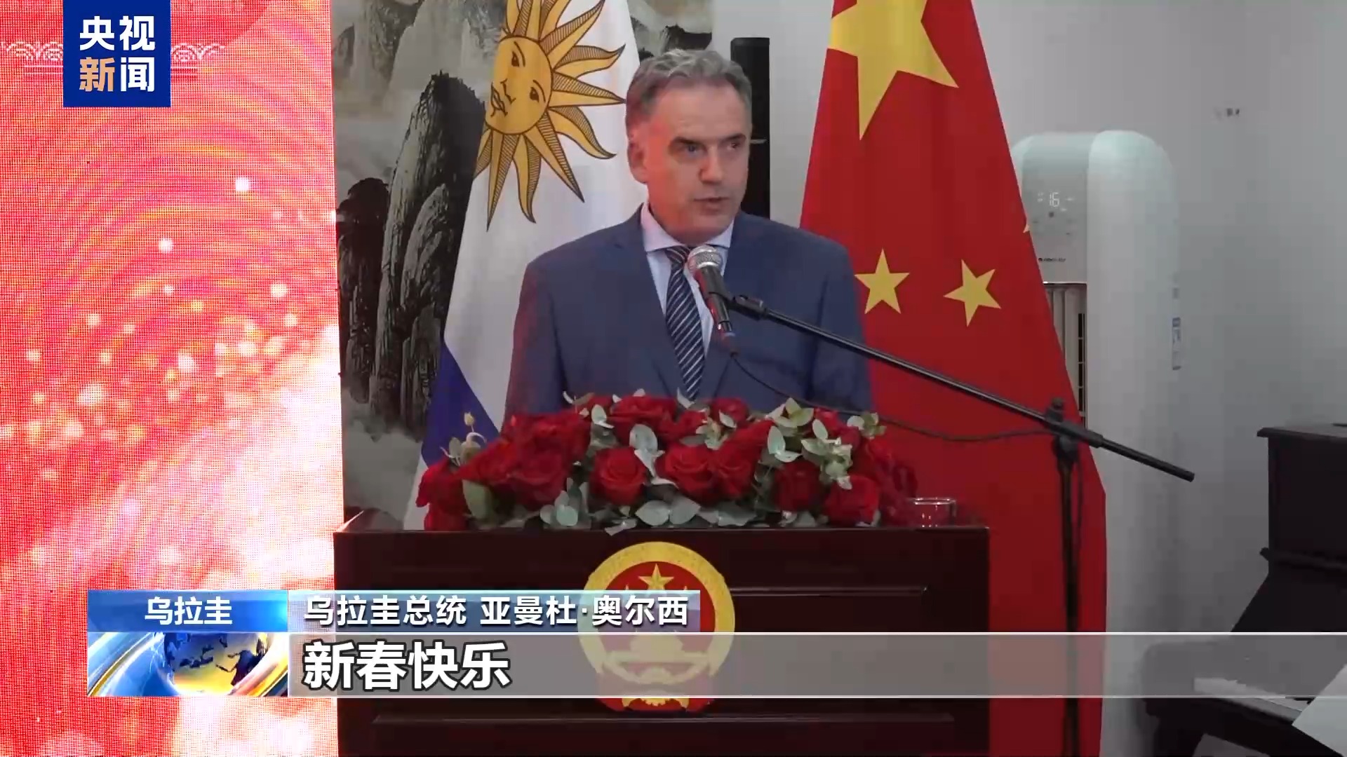 烏拉圭總統(tǒng) 亞曼杜·奧爾西:祝愿全體中國(guó)人民、全體烏拉圭人民新春快樂。非常感謝大家,祝大家新春快樂,春節(jié)快樂。