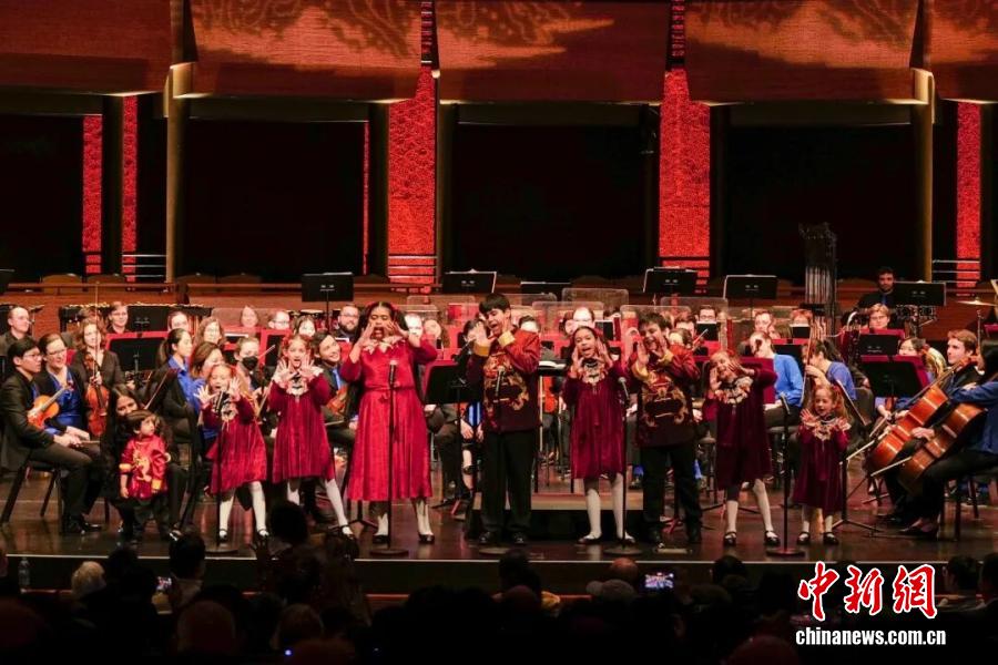 當(dāng)?shù)貢r間2026年2月15日,第七屆“春之聲”中國新年音樂會在美國紐約林肯中心爵士樂中心玫瑰劇場舉行。圖為來自美國的兒童用中文表演歌曲串燒。 中新社記者 王帆 攝