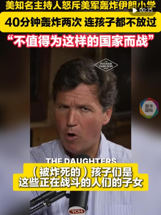 美國??怂剐侣勵l道前主持人塔克·卡爾森在3月10日發(fā)布的視頻中怒斥美軍襲擊伊朗小學的行為毫無人性,直言“這樣的國家根本不值得為之戰(zhàn)斗”。