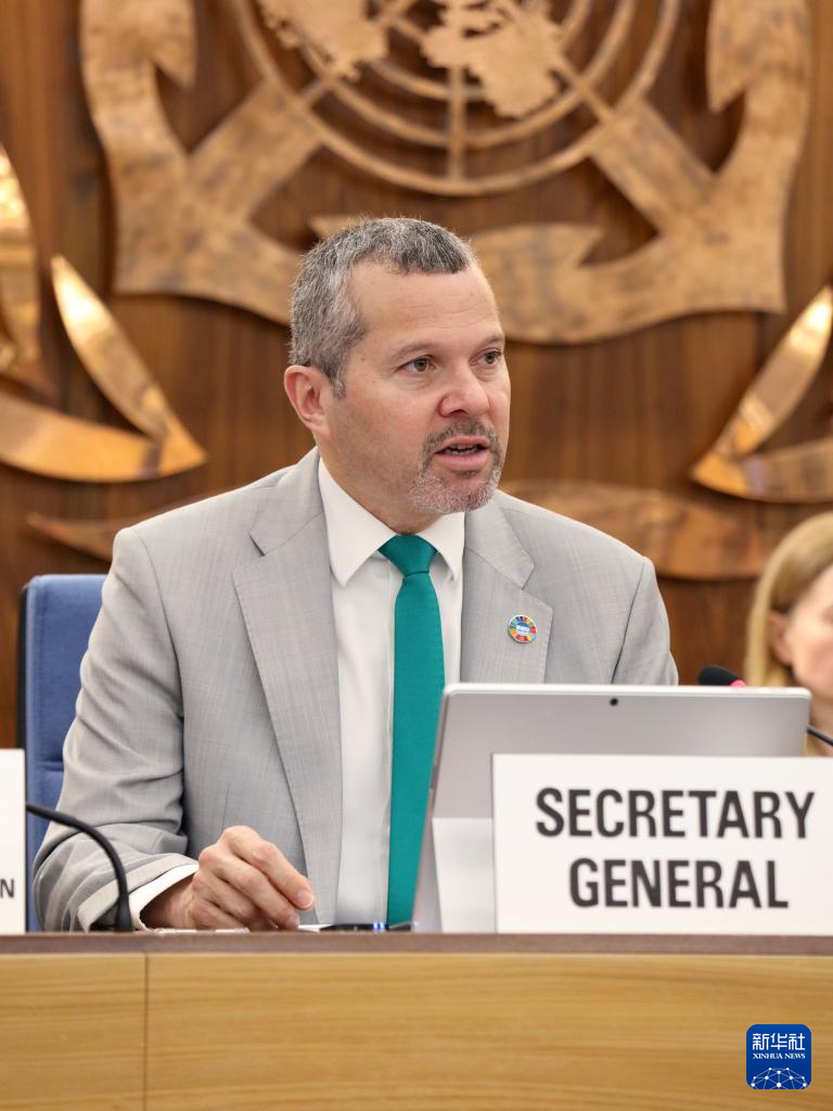 3月18日,國際海事組織秘書長多明格斯在英國倫敦舉行的國際海事組織理事會第36屆特別會議上致辭。新華社發(fā)(國際海事組織供圖)