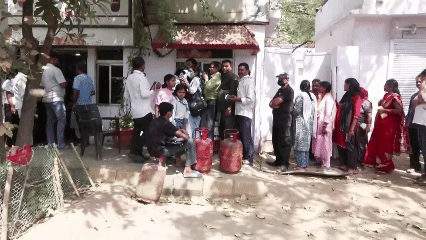 印度民眾排隊等待購買液化石油氣。