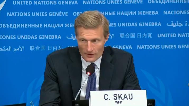 世界糧食計劃署副執(zhí)行干事卡爾·斯考在新聞發(fā)布會上發(fā)言。