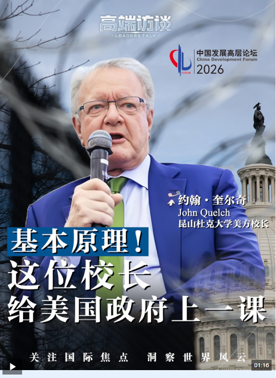 3月22日,中國(guó)發(fā)展高層論壇2026年年會(huì)在北京舉行。昆山杜克大學(xué)美方校長(zhǎng)約翰·奎爾奇在現(xiàn)場(chǎng)談到貿(mào)易保護(hù)主義時(shí)坦言,這將招致全球反對(duì),只會(huì)產(chǎn)生嚴(yán)重的負(fù)面后果。
