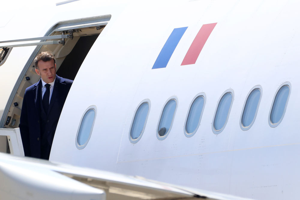 3月9日,法國總統馬克龍抵達塞浦路斯西南部的帕潘德里歐空軍基地。新華社發(fā)(喬治·克里斯托弗魯攝)