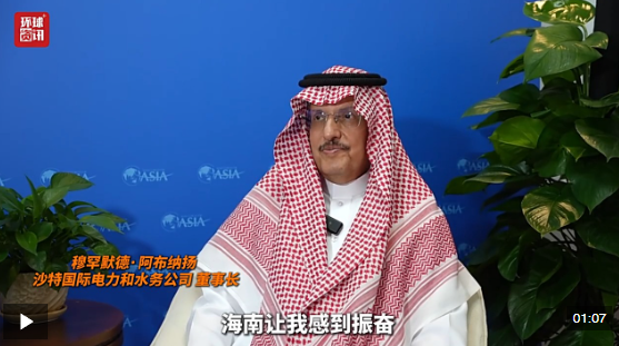博鰲亞洲論壇2026年年會(huì)3月24日至27日在海南博鰲舉行。論壇期間,來(lái)華參會(huì)的沙特國(guó)際電力和水務(wù)公司創(chuàng)始人兼董事長(zhǎng)穆罕默德·阿布納揚(yáng)接受總臺(tái)環(huán)球資訊記者專訪。